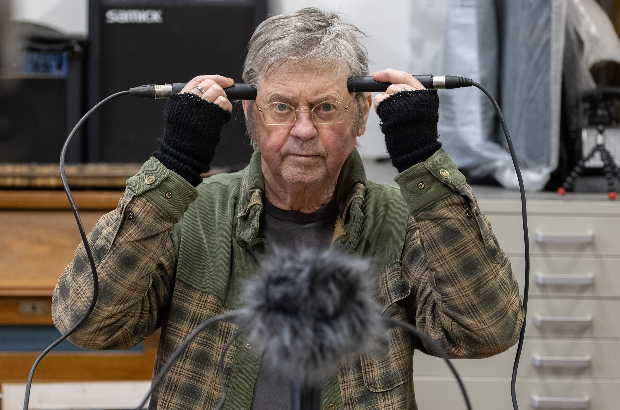 2026 – Hoofdzakelijk Stilte is een solitaire performance in mijn atelier. Voor de duur van 1 minuut heb ik links en rechts van mijn hoofd een microfoon gehouden om geluid van binnenuit te kunnen vangen. Opnamedag was de eerste dag van het jaar 2026, het jaar waarin mijn hersenen al vroeg een belangrijk onderwerp zijn geworden.